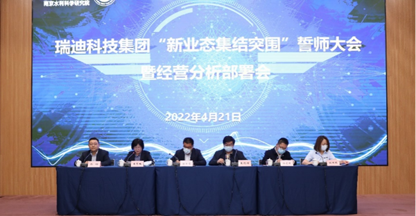 2022年4月21日下午,瑞迪科技集团召开“新业态集结突围”誓师大会暨经营分析部署会,南京水科院戴济群副院长、唐云清副院长出席会议并讲话。会议采取线上线下联动方式,集团董事会成员、各公司领导班子成员、中层骨干人员、集团五大事业板块青年骨干成员共200余人参加本次会议。