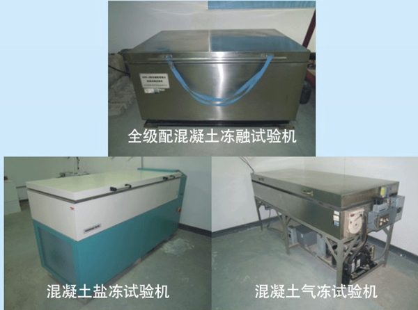 主要技术指标:1)控温范围:-25℃-+35℃;控温精度:0.3K;(2)升温速率10℃/h;降温速率10℃/h;加热功率:4000W,制冷功率:6000W,环境温度10-28℃,湿度20%-64%;同时进行;(3)10个标准试件的冻融循环试验;(4)试件单面受冻。冻融介质与试件底面接触,主要通过毛细管吸附进入试件;(5)根据混凝土的实际使用环境,冻融介质可以是水或盐溶液。;6)抗冻性测试时以水为冻融介质,通过测试一定冻融循环次数下试件的吸水程度辅以受冻面的剥落量来判断混凝土的抗冻能力。