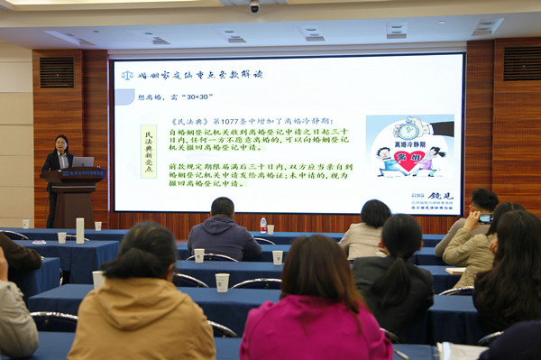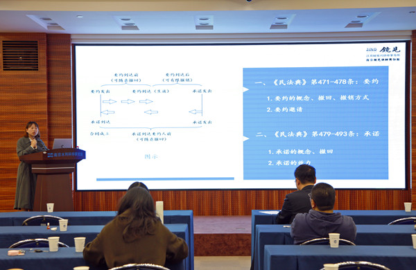 《中华人民共和国民法典》是新中国成立以来第一部以“法典”命名的法律,是新时代我国社会主义法治建设的重大成果,民法典在中国特色社会主义法律体系中具有重要地位,是一部固根本、稳预期、利长远的基础性法律。袁胜寒主任以习近平总书记对民法典重大意义的论述作为开篇,提纲挈领地给大家介绍《中华人民共和国民法典》的发展历史、重大意义、创新内容等,让大家了解《中华人民共和国民法典》整体框架。同时从水利行业特点出发,给大家介绍水利行业以及工程建设等领域涉及《中华人民共和国民法典》相关法律条款知识,让与会人员进一步加深了对法律条文的理解和认识。随后,事务所另外两位律师结合具体案例,生动形象介绍了合同编、婚姻家庭编和继承编的相关内容,为大家厘清在招投标过程中、各类合同订立与履行过程中可能遇到法律风险,以及在日常生活中可能遇到的各类法律问题,丰富了大家的法律视野。会后,几位律师还为一些同事进行了法律咨询指导。