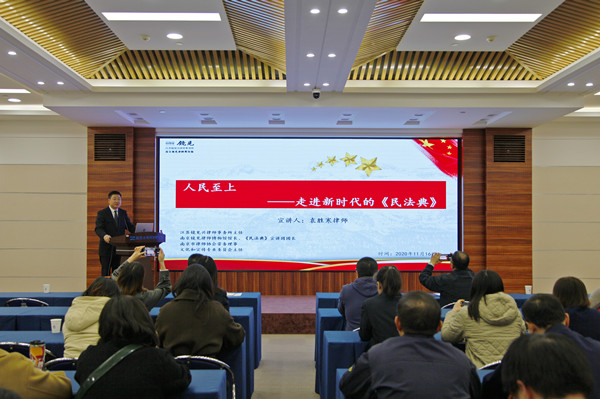 根据水利部关于学习宣传民法典相关文件精神,11月16日下午瑞迪科技集团邀请了江苏镜见兴律师事务所袁胜寒主任一行,举办了瑞迪融创大讲堂系列管理讲座——“人民至上——走进新时代的《中华人民共和国民法典》”主题宣讲学习会。