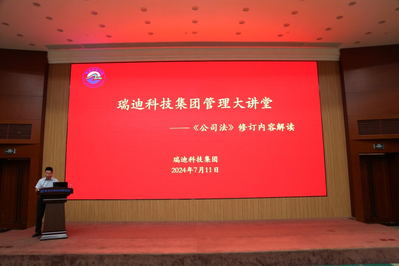 为提高瑞迪科技集团管理人员法律风险防范意识,精准把握和主动适应新法,提升企业合规经营管理水平,2024年7月11日下午,集团邀请北京市高朋律师事务所丁冲律师作新《公司法》专题培训,集团董事长陈秀瑛出席培训,集团董事、副总经理孙宇主持本次培训。